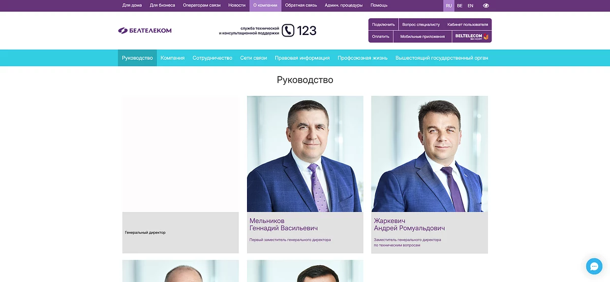«Белтэлекам» застаўся без гендырэктара? Яго выдалілі з сайта кампаніі