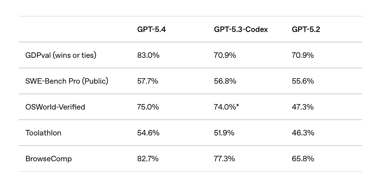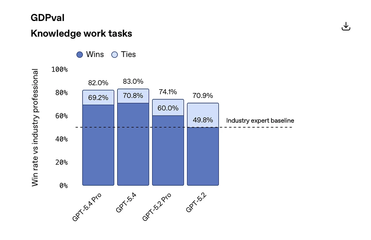 Па дадзеных кампаніі, GPT-5.4 дэманструе рэкордныя вынікі ў шэрагу тэстаў. У прыватнасці, мадэль прадэманстравала лепшыя паказчыкі ў бенчмарках OSWorld-Verified і WebArena Verified, якія правяраюць здольнасць ШІ кіраваць камп’ютарам і браўзерам. У тэсце GDPval, які ацэньвае выкананне задач інтэлектуальнай працы ў дзясятках прафесій, мадэль дасягнула выніку 83%.