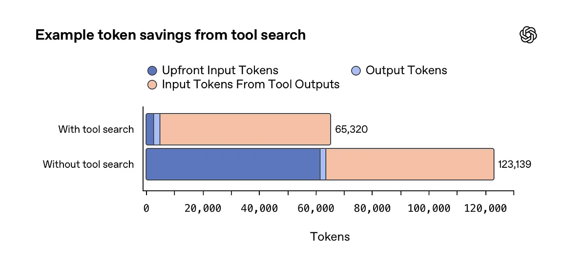Разам з запускам OpenAI прадставіла новы механізм працы з інструментамі — Tool Search. Раней мадэлі атрымлівалі апісанні ўсіх даступных інструментаў загадзя, што павялічвала расход токенаў. Цяпер сістэма можа запытваць інфармацыю аб патрэбных інструментах па меры неабходнасці, што робіць запыты хутчэйшымі і таннейшымі пры працы з вялікай колькасцю падлучаных сэрвісаў.