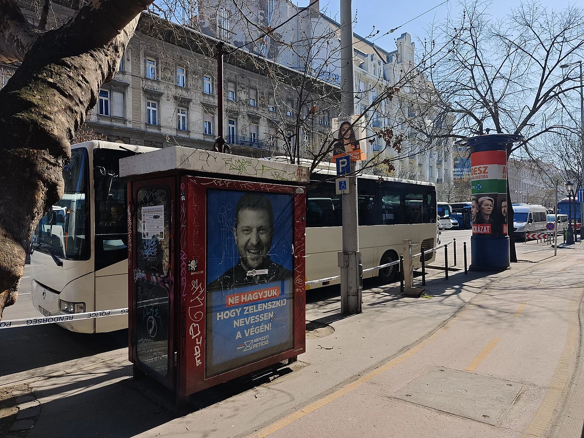 За месяц да выбараў разгарнулася плакатная агітацыя. Над партрэтамі апазіцыйных кандыдатаў плакаты «Фідэс» [кіруючая на той момант партыя прэм’ер-міністра Віктара Орбана] часта здзекаваліся. У той жа час было адчуванне, што на выбары ідзе партыя Уладзіміра Зяленскага. Орбан усяляк выкарыстоўваў яго ў негатыўным ключы. Усе білборды ў горадзе былі заклееныя банэрамі, на якіх Зяленскі і Урсула [старшыня Еўракамісіі Урсула фон дэр Ляен] прадстаўляліся ў нявыгадным святле. А разам з імі і Мадзьяр.