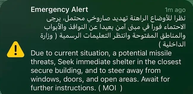 Сірэн падчас удараў не было. Затое былі рассылкі сістэмных натыфікацый на мабільныя прылады, калі пачыналася абстрэл. Яны заклікалі схавацца ў найбліжэйшым бяспечным месцы. А пасля заканчэння абстрэлаў паведамлялі, што ўсё спакойна і можна вярнуцца да звычайнага ладу.