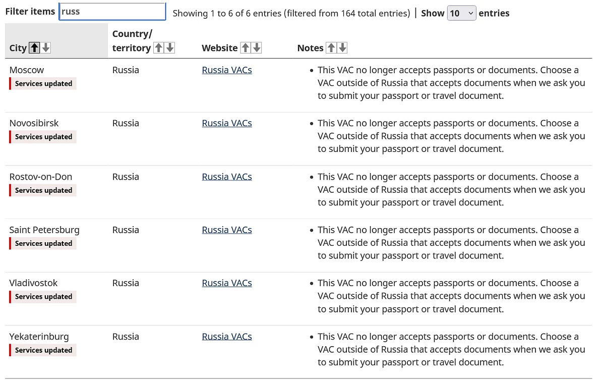 Теперь при поиске визового центра в России рядом с этими городами стоит пометка, что там больше не принимают паспорта и другие документы. И просят выбрать визовый центр где-нибудь ещё. В Беларуси визовых центров Канады нет.