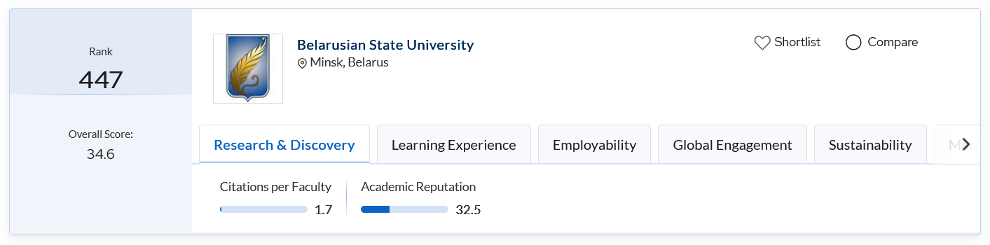 В БГУ напомнили, что он представлен в 10 глобальных рейтингах университетов, включая QS — там он под номером 447.