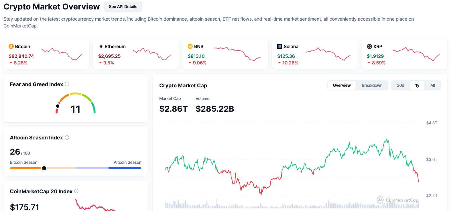 Капитализация крипторынка, по данным CoinMarketCap, тоже упала на треть — с пиковых $4,3 трлн до менее $2,9 трлн. Она опустилась ниже $3 трлн впервые с апреля.