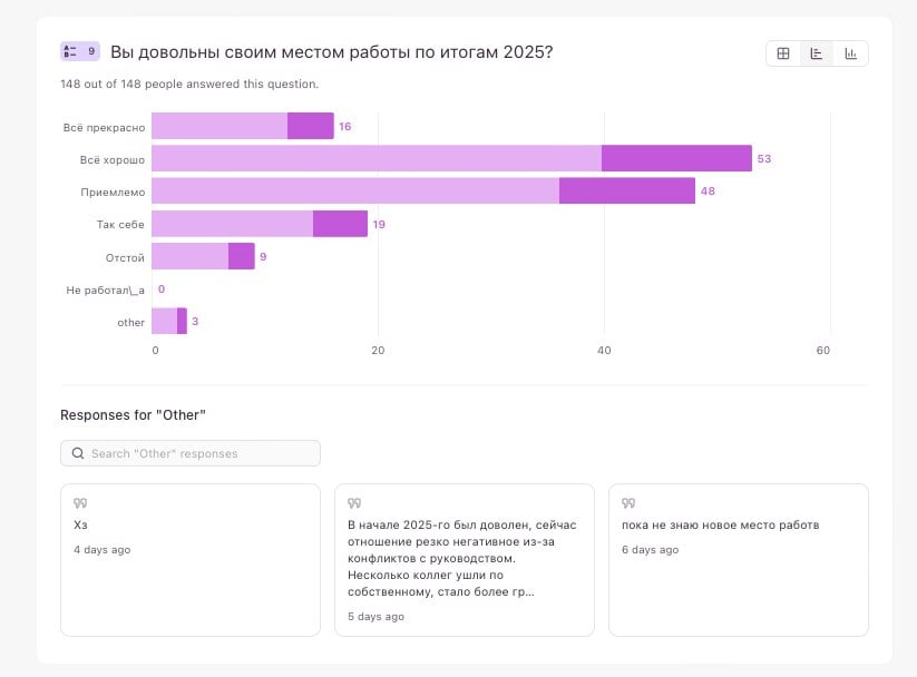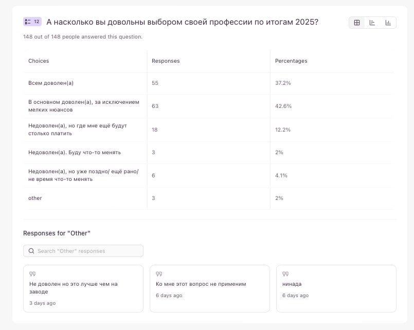 Мы спросили айтишников, довольны ли они своим местом работы по итогам 2025. И вообще профессией. Ответили 148 человек.