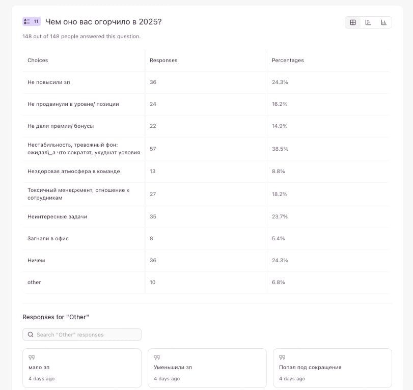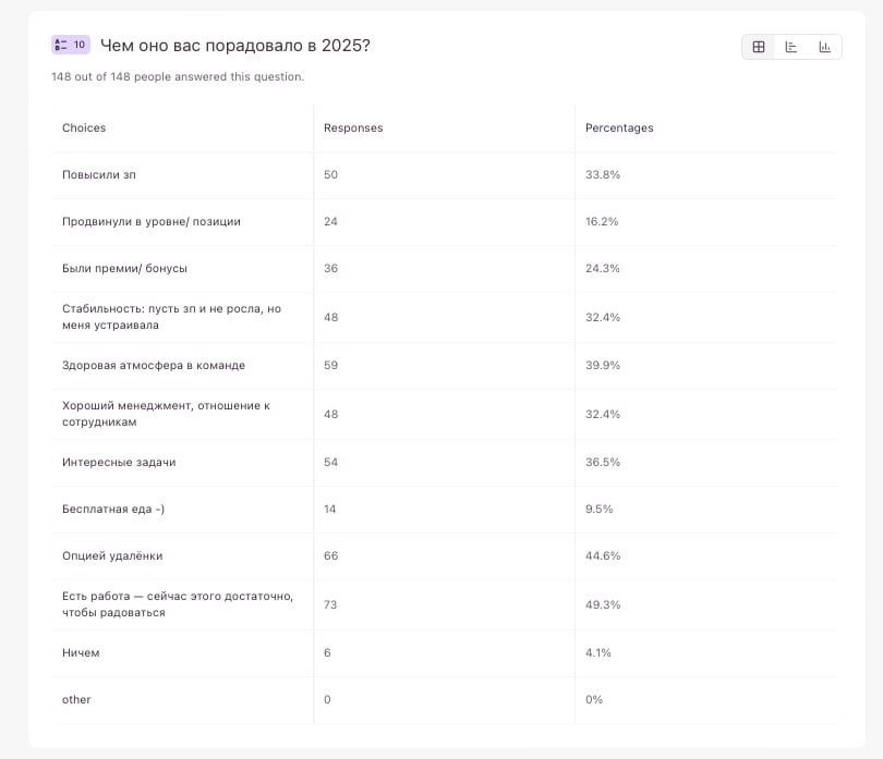 Чем именно радовала работа? Ну, конечно, в 2025-м — самим наличием. Почти половине достаточно этого для удовлетворения.