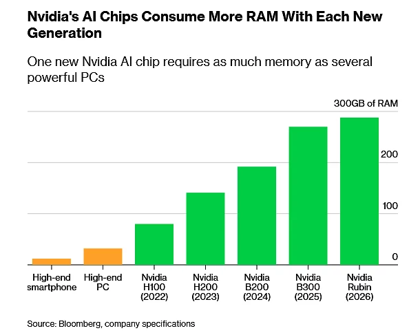 Главная причина — резкий рост спроса в сфере ИИ. Технокомпании вроде Google, OpenAI и Amazon массово закупают ускорители Nvidia, которые требуют огромного объёма памяти для работы моделей. Производители потребительской электроники вынуждены бороться за ограниченные поставки чипов от Samsung, SK Hynix и Micron.