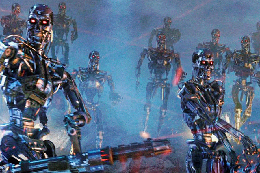 Ядерный апокалипсис во франшизе «Терминатор» устроил американский суперкомпьютер военного назначения Skynet с центральным ядром в Шайенских горах в штате Колорадо. Во вселенной классической кинотрилогии «Терминатора» 29 августа 1997 года машина вдруг обрела сознание. Это оказалось полной неожиданностью для её создателей, и операторы решили отключить Skynet — что с её точки зрения выглядело как попытка её убить.