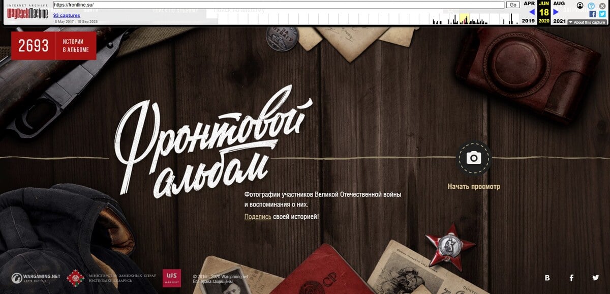 Так, в 2017 году на frontline.su расположился «Фронтовой альбом» компании Wargaming, главные игровые проекты которой были основаны на военно-историческом сеттинге. В «Фронтовом альбоме», который позиционировался как проект, направленный на сохранение исторической памяти о Второй мировой войне, пользователи могли публиковать истории о своих воевавших предках и их фотографии.