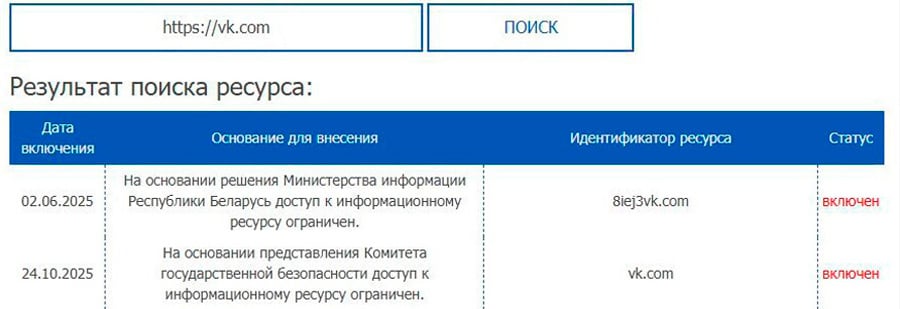 Вечером 24 октября в Беларуси был ограничен доступ к vk.соm. Такая информация появилась на сайте «БелГИЭ» (государственной инспекции по электросвязи).