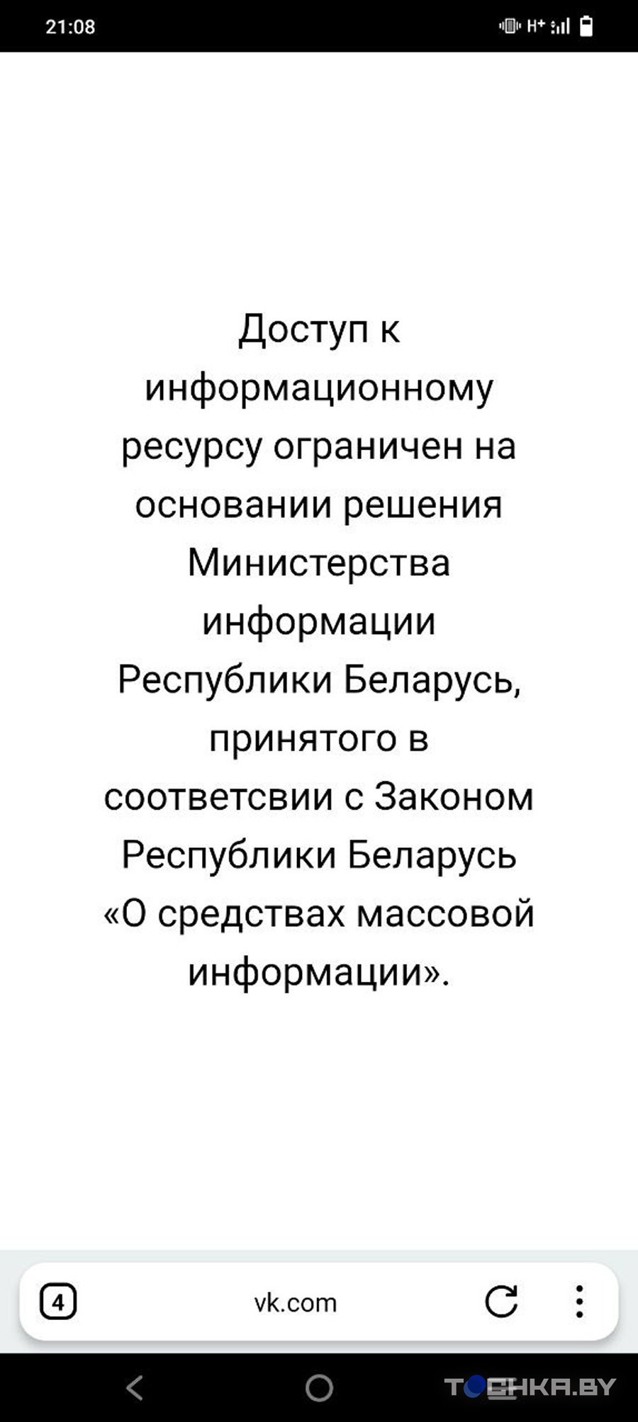 При попытке открыть сайт пользователь видел уведомление с текстом: «Доступ к информационному ресурсу ограничен на основании решения Министерства информации Республики Беларусь, принятого в соответствии с законом Республики Беларусь „О средствах массовой информации“».