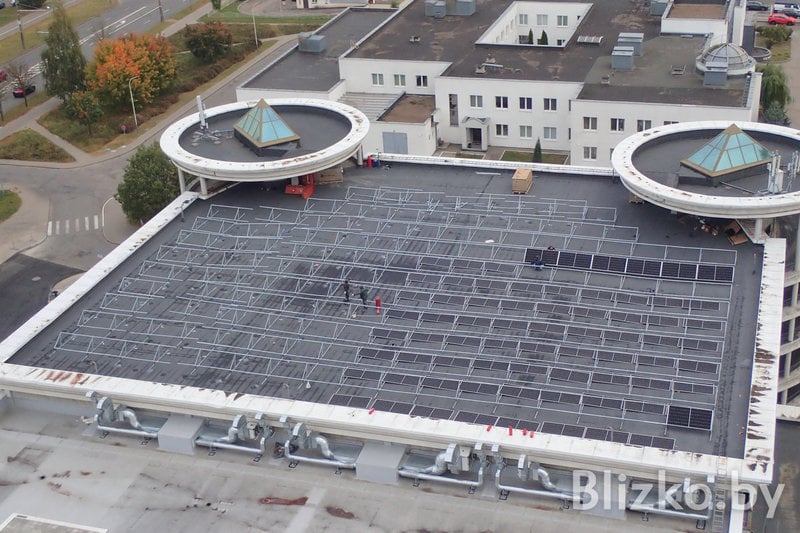 В Минске обустраивают парк солнечных батарей — он разместится на крыше многоуровневого паркинга, который примыкает к бизнес-центру «Титан» на проспекте Дзержинского. Фотографии опубликовал портал blizko.by.