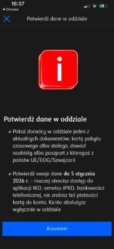 Почему я открыл счёт только в ноябре? Потому что у меня как раз заканчивался 3-летний ВНЖ и Alior Bank, где я до этого обслуживался 3,5 года, отправил меня восвояси. Я открыл счёт в PKO за 2 недели до окончания ВНЖ, а пуш-уведомление они прислали через два дня после того, как моя карта побыту уже закончилась. То есть пойти в другой банк я уже не могу.