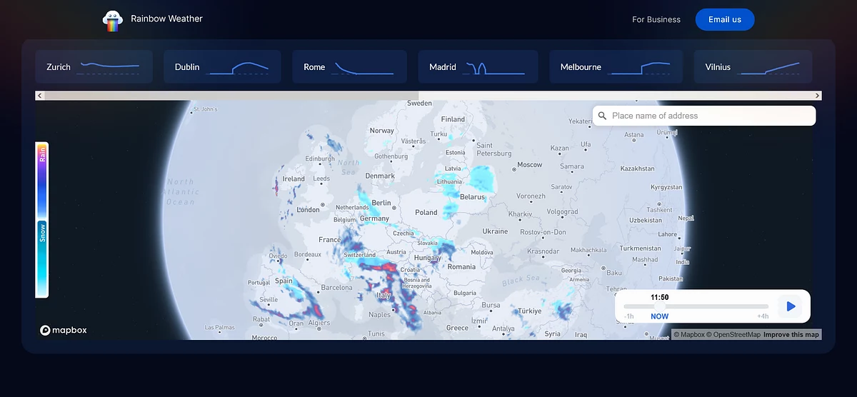 Также Rainbow запустил открытый инструмент weatherindex.ai для сравнения точности краткосрочных прогнозов разных провайдеров (AccuWeather, The Weather Company и других) на основе проверенных данных аэропортов.