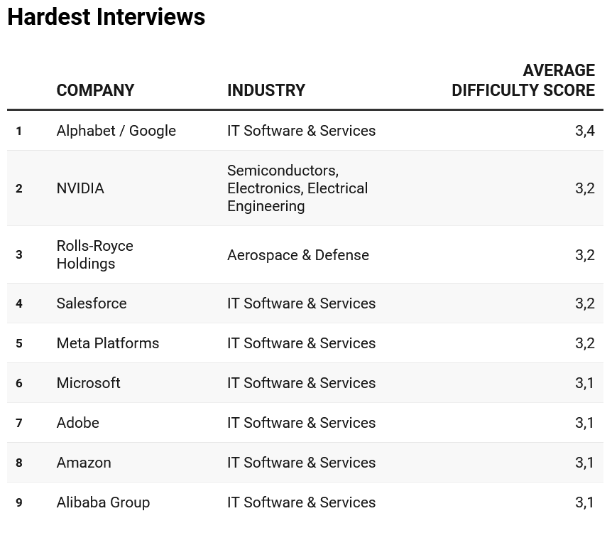 Появился рейтинг компаний, в которые сложнее всего пройти собесы. В топе почти все — айтишные