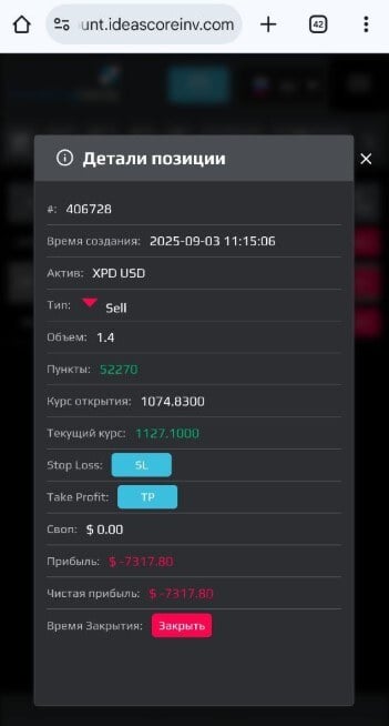 Позднее, поразмыслив, я пришёл к выводу, что они специально сделали эту подмену, изменили сообщение на XPT USD после того, как я открыл позицию. Я просто не мог ошибочно ввести пару — я её не руками вводил, а копировал с помощью Ctrl+C -> Ctrl+V. А буфер обмена ведь не ошибается.