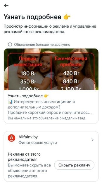 Первый раз я связался с мошенниками 12 августа. Вечером, перед сном, я по привычке листал инсту. В ленте нашёл интересную рекламу про преумножение инвестиций, якобы от «Альфа-Банка» (на это намекал логотип банка в объявлении).