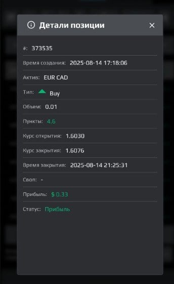 А вот моя первая сделка от 14 августа, с прибылью в $0,33. Помню, что чувствовал тогда эйфорию, ощущал себя крутым бизнесменом: