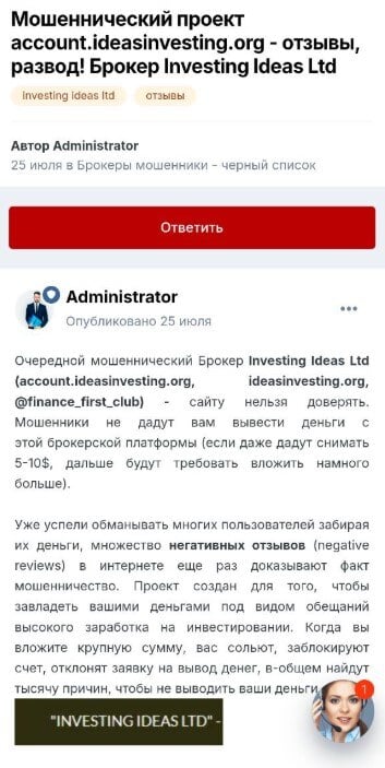 5 сентября я вообще не спал. Думал, крутился. И решил почитать, что пишут в интернетах. И тут всё стало на свои места: там прямо пишут, что фирма Investing Ideas LTD, с которой я связался, — это мошеники.