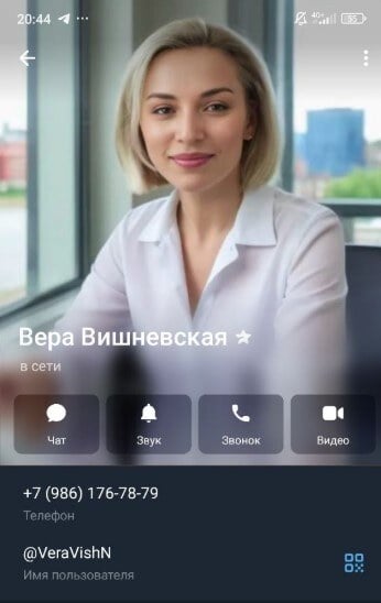После перевода первой суммы мне дали контакт брокера Веры Вишневской, которая созванивалась со мной только по телеграму. Один созвон был с видео (жалею, что не сделал его запись). Затем мы общались только звуковыми звонками.