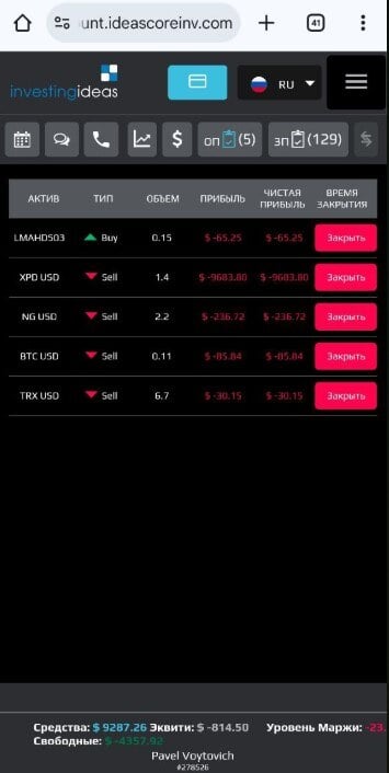 Добавлю, что их стандартная тактика — это спекуляция на волатильности. Создание якобы очень краткосрочных сделок, которые будто бы моментально меняют цену на рынке. Но если в этот момент вы откроете биржевые сайт, на реальном рынке таких прыжков, как у них, вы не увидите. Ещё они занимаются манипуляциями с ценами открытия сделок. И вдобавок их сервер не даёт самостоятельно закрывать отрицательные сделки. Я пробовал делать это по ночам, когда они спят. И сайт требует обязательно связываться с брокером.