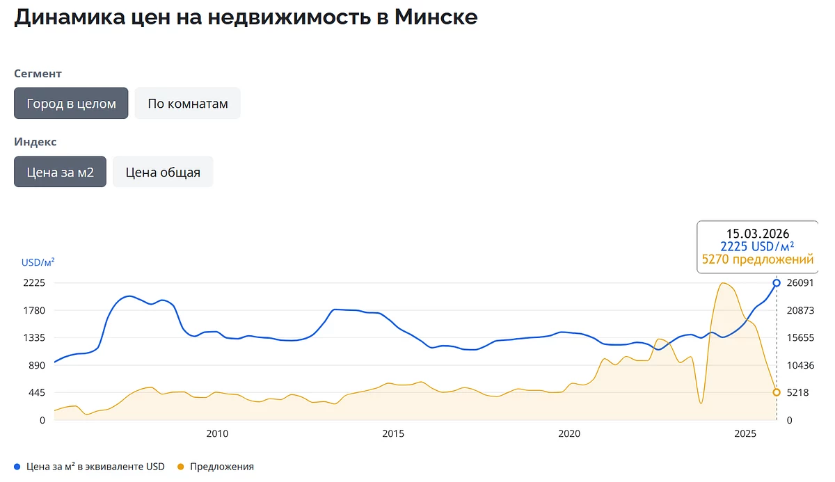 По статистике realt.by, цены на недвижимость в беларусской столице в последние месяцы бьют рекорды.