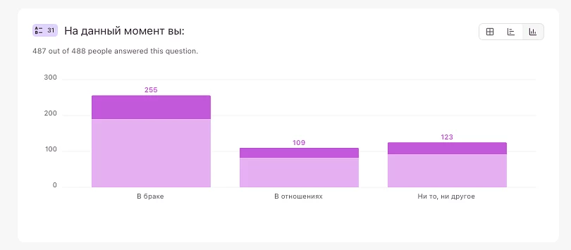 Из почти полутысячи участниц анкета три четвёртых состоят в браке или в отношениях.