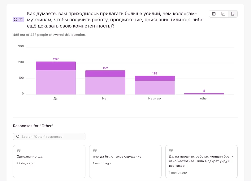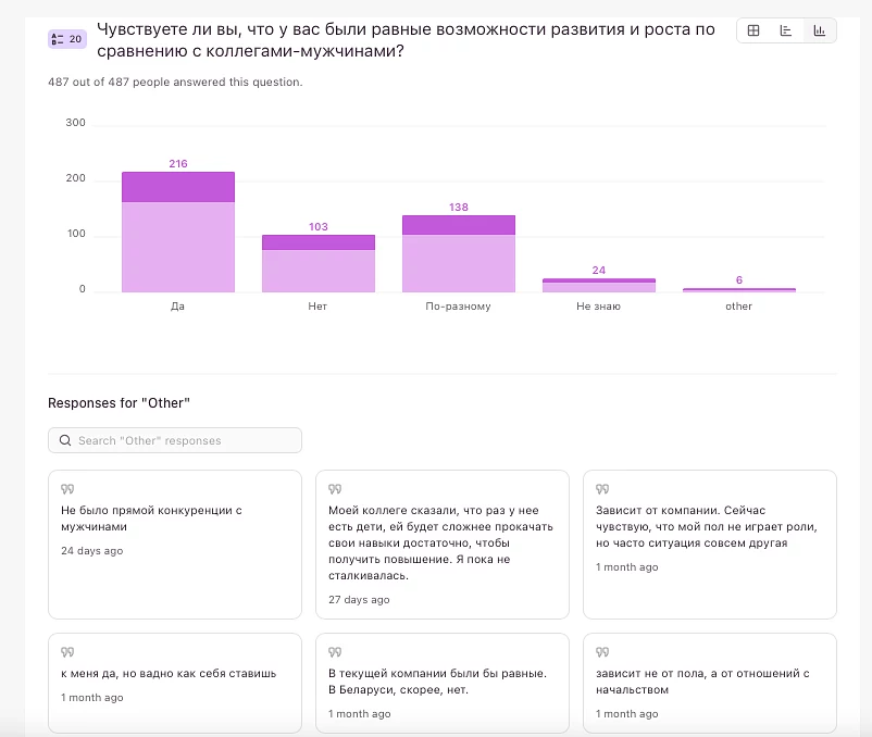 Это всё, конечно, не значит, что конфликтов или предрассудков нет вовсе. Многие участницы подчёркивают, что часто предвзятость возникает в другом разрезе: не гендера, а, к примеру, возраста или специальности/роли в компании.
