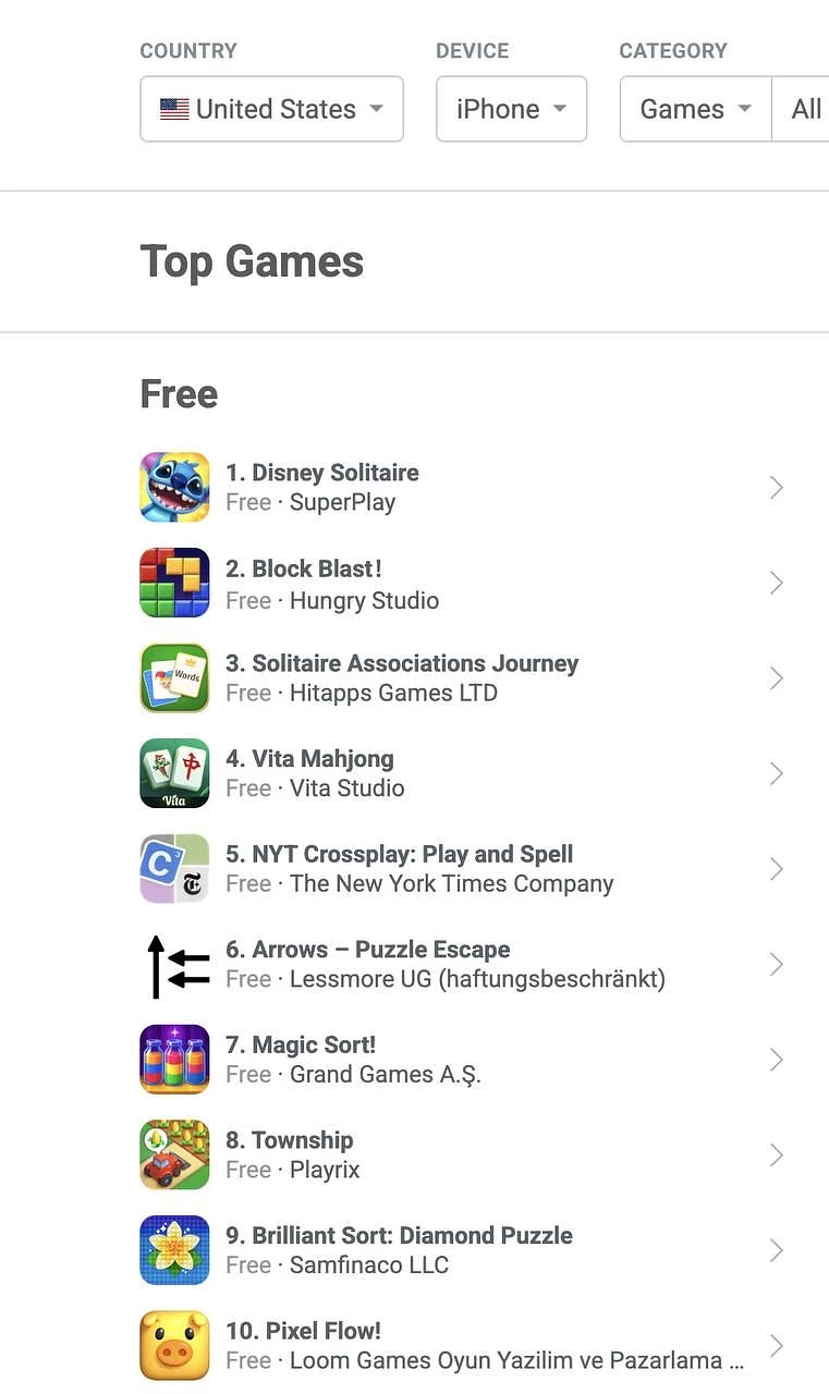 Новая игра Brilliant Sort: Diamond Puzzle от Belka Games вошла в топ-10 бесплатных iOS-проектов в США — она заняла там 9 место. Об этом рассказал в LinkedIn глава разработки студии Олег Тузов. Пост заметил app2top.
