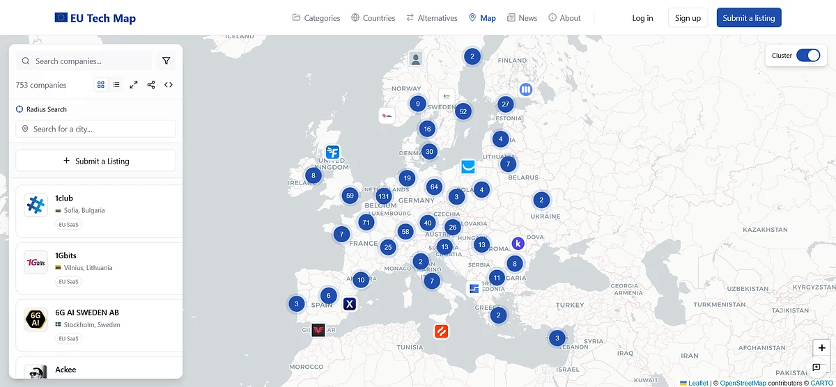 Карту EU Tech Map запустил предприниматель Данте Эмилио Грасси, который базируется в шведском Мальмё. На ней по странам собраны различные технологические компании и сервисы, которые могут заменить американские и способствовать укреплению цифрового суверенитета ЕС.