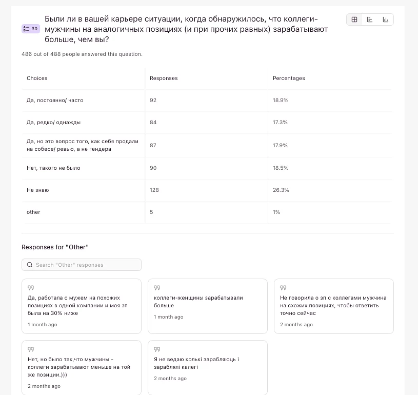 Больше половины айтишниц хотя бы раз в жизни обнаруживали, что коллеги-мужчины на аналогичных позициях зарабатывают больше, правда треть из них (18% всех участниц) думает, что это не связано с их полом.